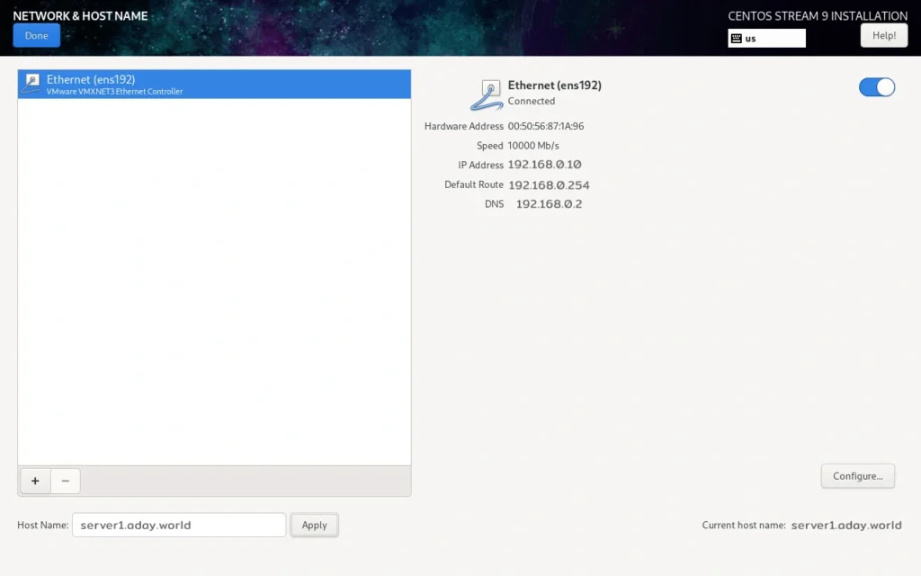 11. ช่อง Host Name: ใส่ชื่อเซิร์ฟเวอร์ตามด้วยโดเมน เช่น server1.aday.world หรือ www.company.com เป็นต้น และคลิก Apply