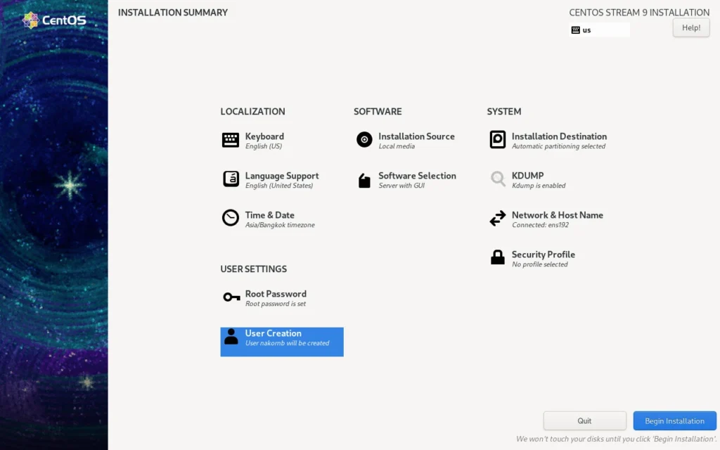 13. หน้าจอ Installation Summary จะไม่มีเครื่องหมายเตือนหรือตกใจแล้ว หรือจะกลับไปแก้ไขข้อมูลหัวข้อใดๆ ก็ได้ ถ้าทุกอย่างถูกต้องแล้ว คลิก Begin Installtion