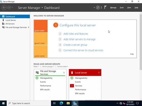 13. เข้าระบบปฏิบัติการ Windows Server 2022 และหน้าจอ Dashboard ปรากฏขึ้น เสร็จสิ้นการติดตั้ง